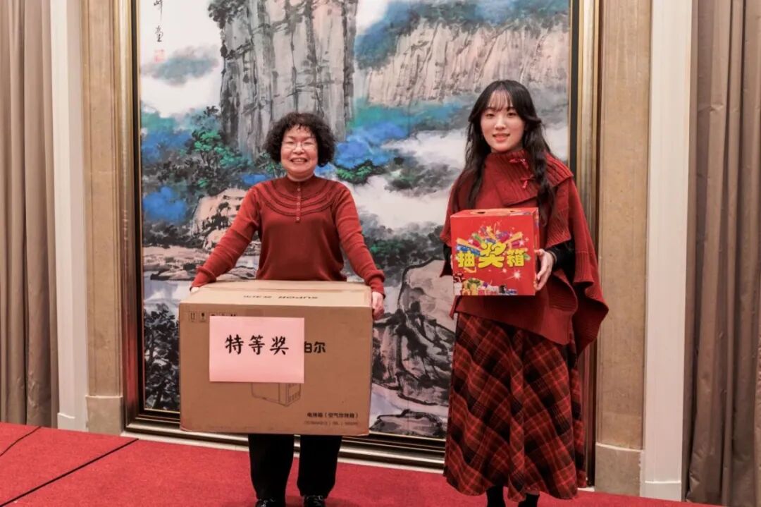 整场晚宴贺声盈耳,笑语交织,同事们暂别平日繁忙,举杯相贺,情谊在斟满的酒杯间流转,更在心间长存。激动人心的抽奖环节,让现场氛围一次次推向高潮。幸运大奖接连开出,欢呼声、喝彩声此起彼伏。